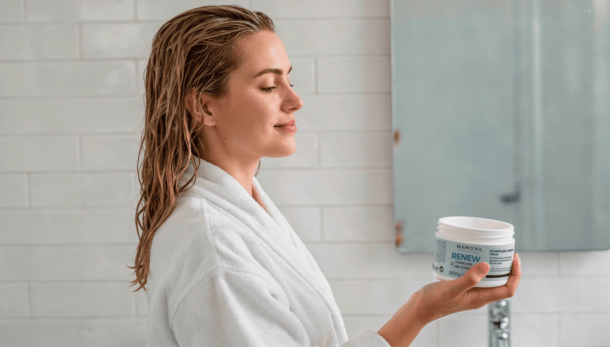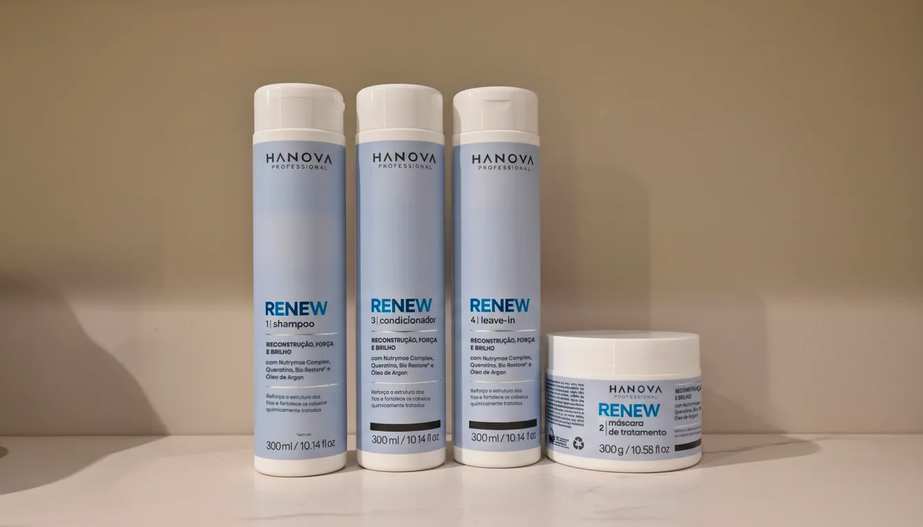 A linha Hanova Renew foi desenvolvida para promover uma recuperação gradual, atuando na estrutura do fio e ajudando a restaurar a resistência, o brilho e a maciez.